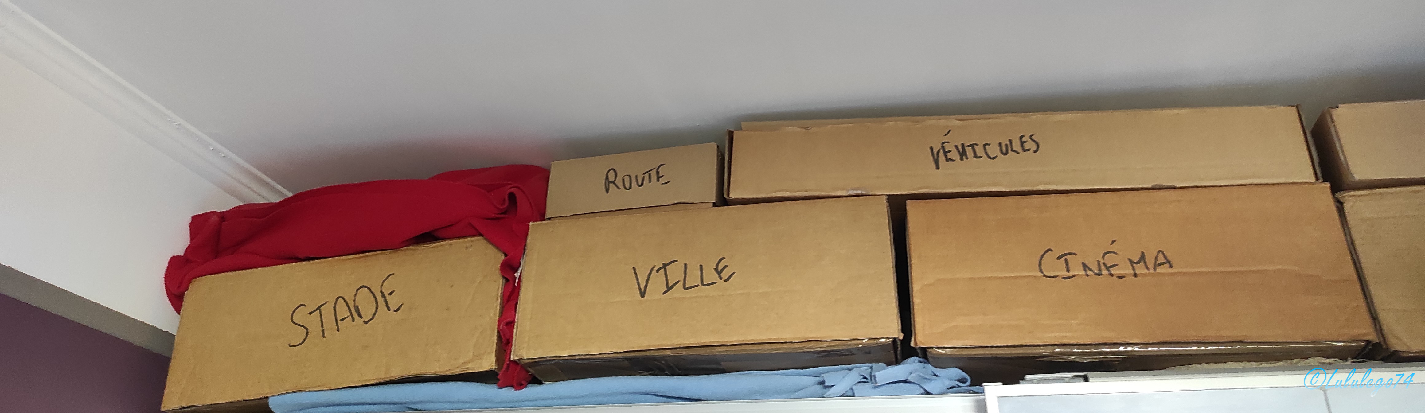 Comme je vous l’ai déjà dit, je commence depuis 2 ans à me remettre très sérieusement dans le monde Lego mais cette fois-ci pour moi-même et non pour mes loulous. Cependant, pour l’instant, faute de temps pour libérer de la place, je les stocke dans des cartons dédiés.