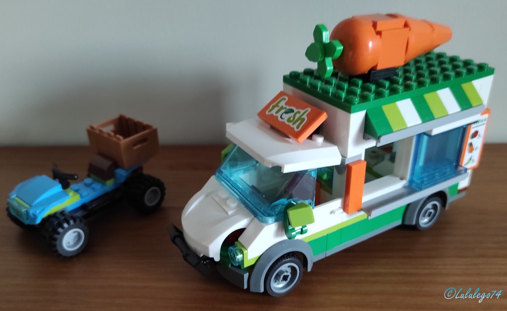 Tous ces véhicules proviennent de sets Lego City ou Lego Friends dédiés au thème de la ferme.