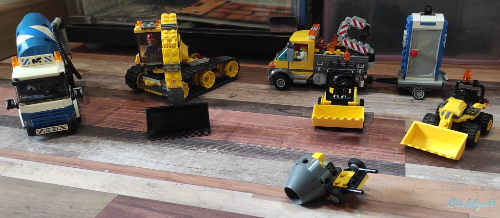 Dans toute ville Lego qui se respecte, il est normal que des travaux soient entrepris. Comme déjà dit précédemment, mon fils a laissé des MOC de maisons non finalisés afin de pouvoir intégrer ses engins de travaux facilement :