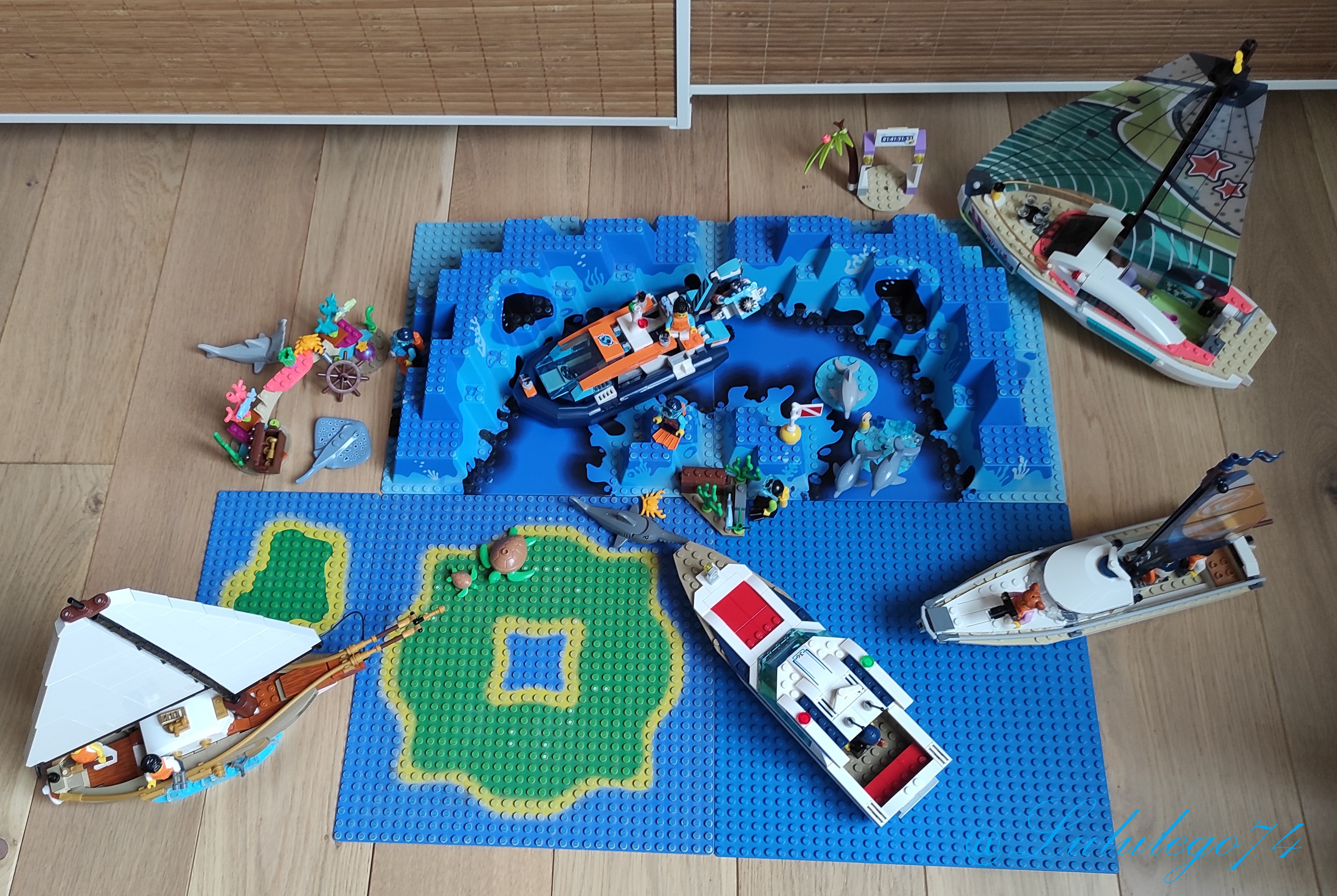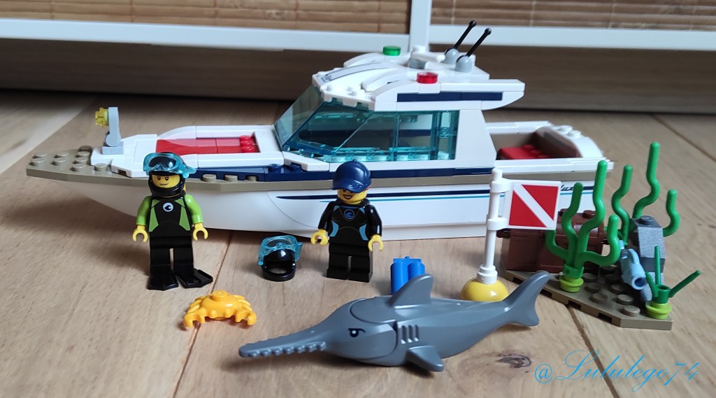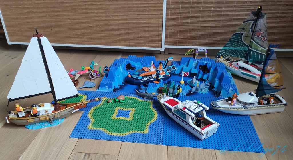 Je me suis attachée très vite aux sets que que l’on peut trouver et notamment aux bateaux car hormis, pour la police et les pompiers chez Lego City, on n’en trouve pas si souvent que cela. Il y en a plus souvent en Lego Friends mais qui se ressemblent quand même à chaque sortie. De plus, je vous ai déjà expliqué que si je choisis un set dans cette dernière gamme, je me sépare des figurines que je laisse à ma fille.