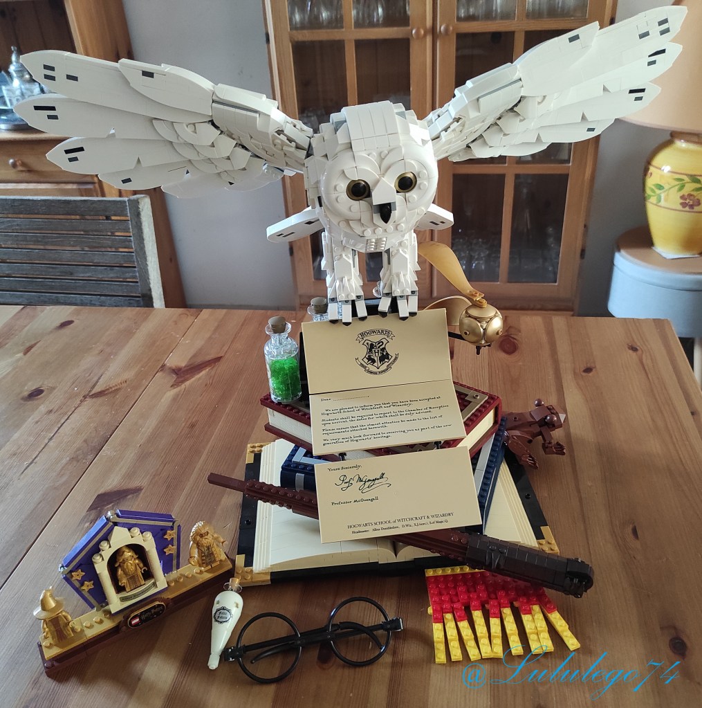 Bien sûr, le temps principal est consacré au montage d’Hedwige mais on va aussi trouver à faire : les lunettes d’Harry Potter, une baguette de sorcier, un plateau de flacons de potions, le Vif d’Or et une lettre d’admission à Poudlard personnalisable.